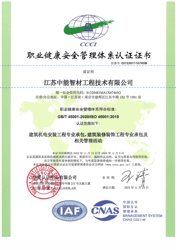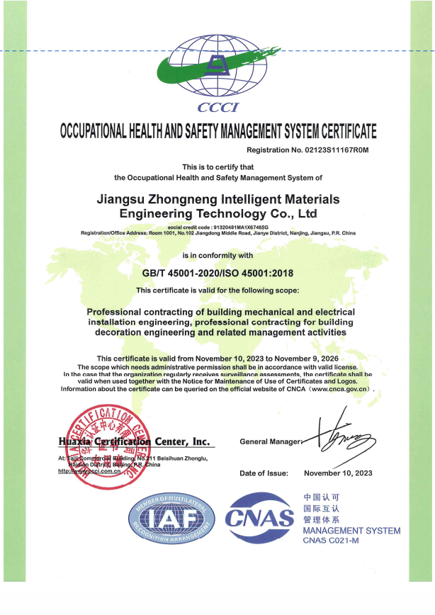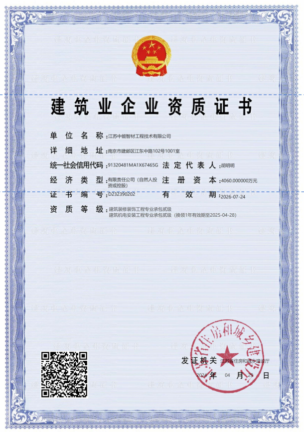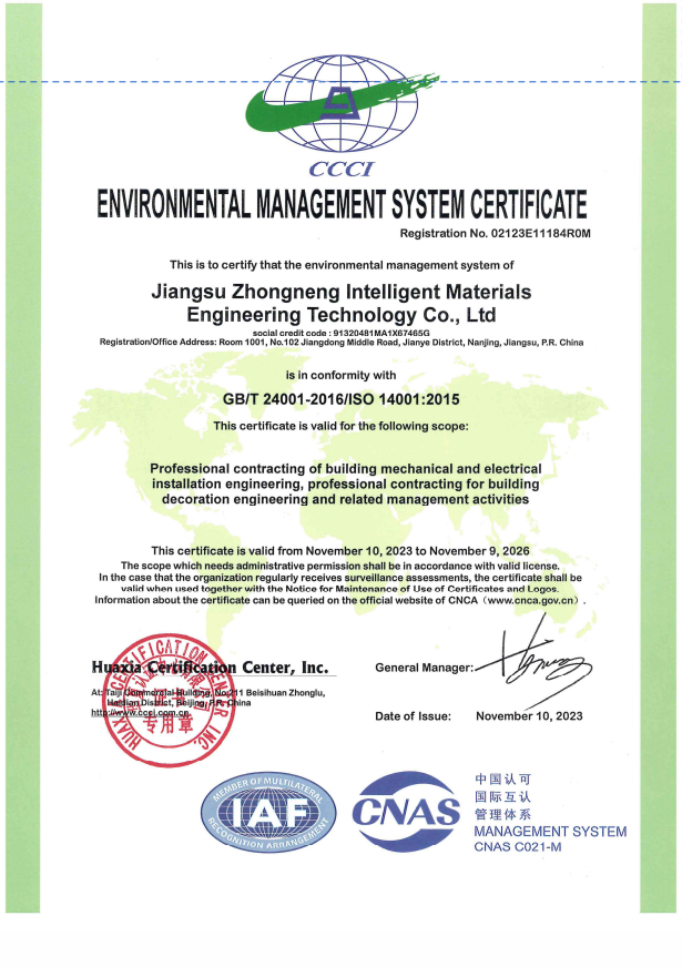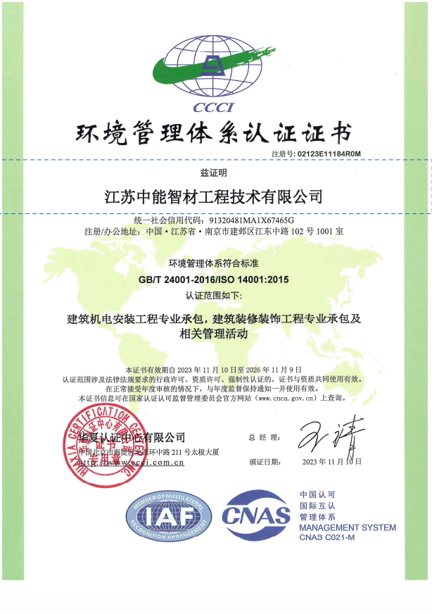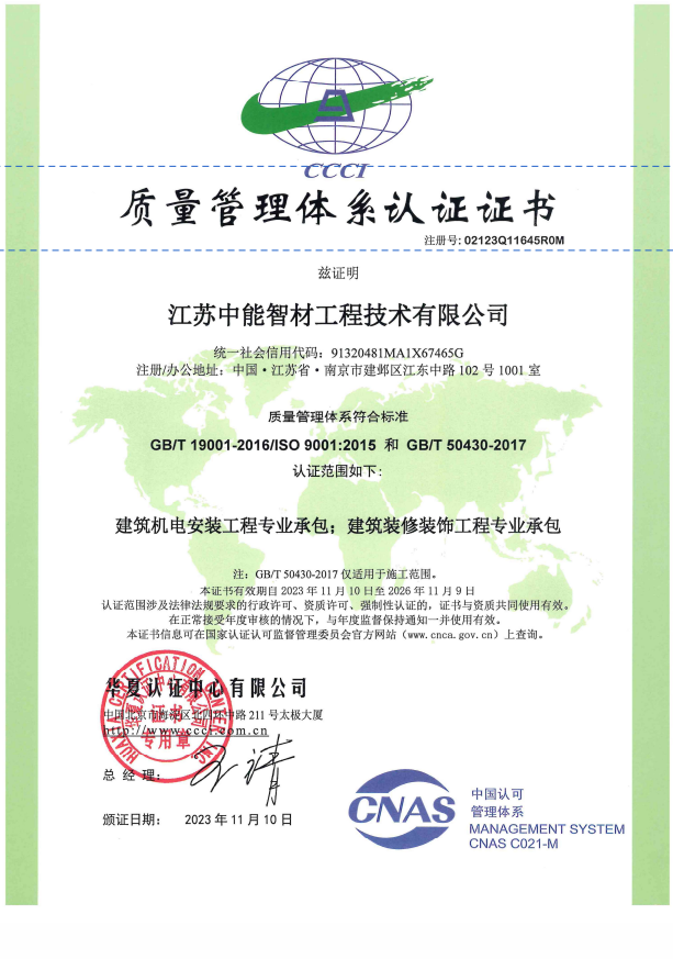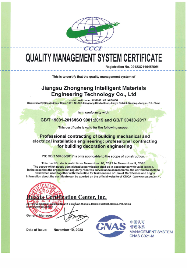 江苏中能智材工程技术有限公司(装修二级、机电二级)成立于2018年9月,是一家专业从事(暖通)机电设备设计、销售、安装、维保等一体化服务的科技工程公司。